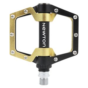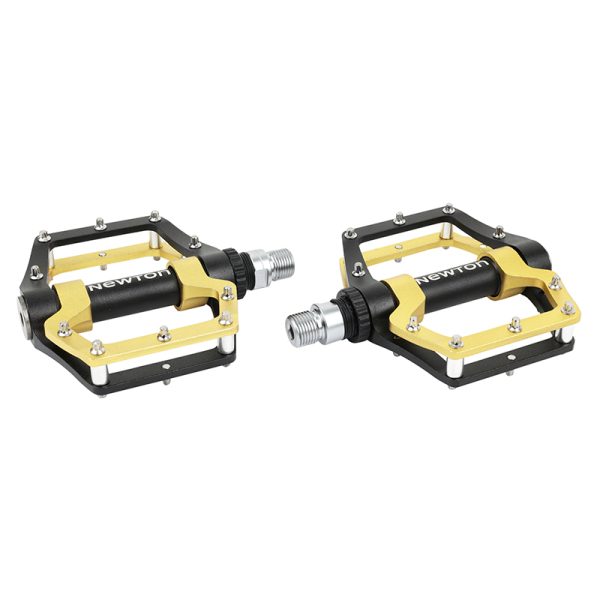 Pédale VTT – BMX Newton Alu Noir – Or 9-16″ à Roulement Etanche Avec Picots Argent (Paire)