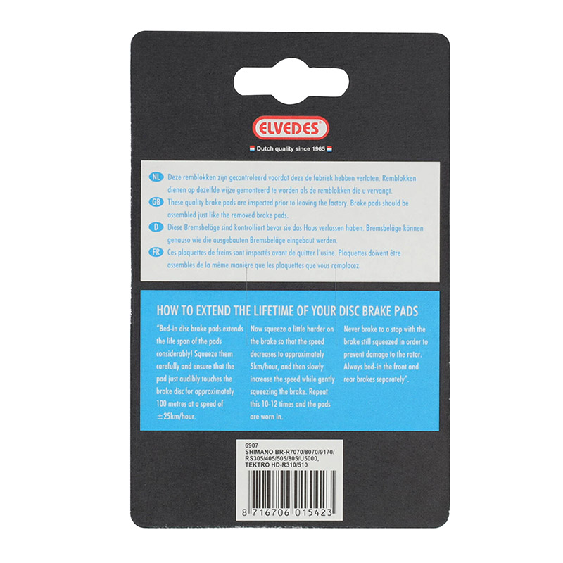 Plaquette de Frein Route Shimano Dura-Ace R9170, Ultegra R8070, Tiagra R4770, Rs805, Rs505, Rs405, Rs305 (Elvedes Soft Organic) (Paire Sur Carte)