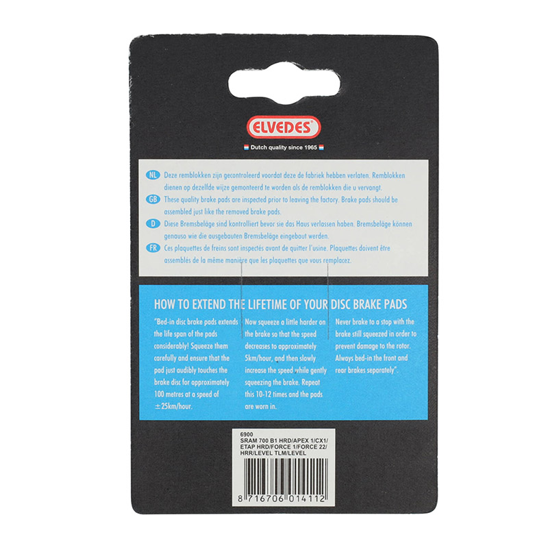 Plaquette de Frein Route – VTT Sram Force 1, Force 22, Red 22B1, Cx1, Rival 1, 22, S700, S900 Aero Hrd, S900 Hrd, Apex Hrd Et Ultimate (Elvedes Soft Organic) (Paire Sur Carte)