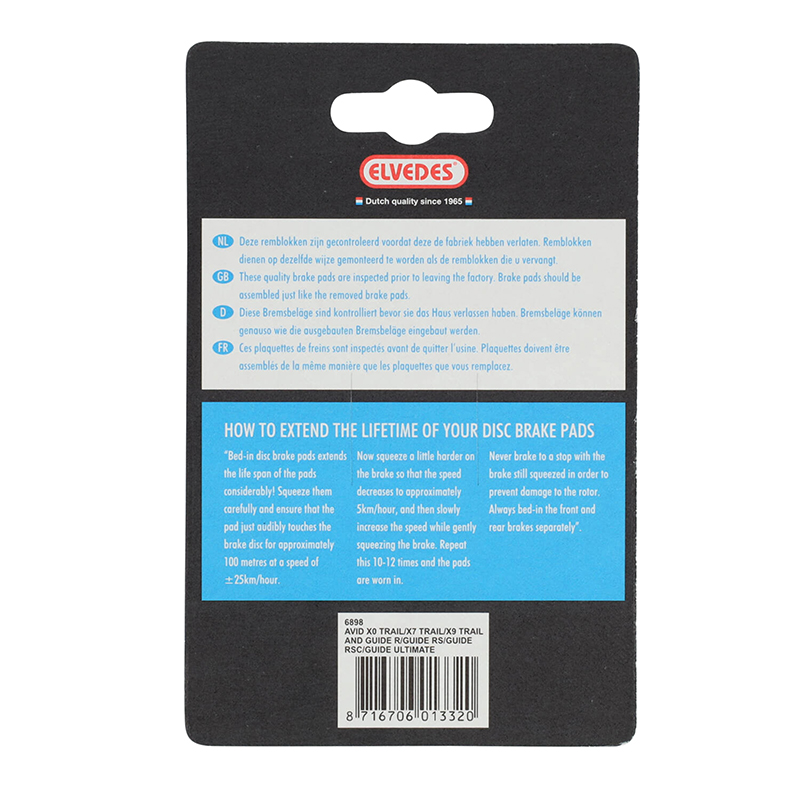 Plaquette de Frein VTT Avid-Sram Guide-Elixir Trail-Xo Trail (Elvedes Soft Organic) (Paire Sur Carte)