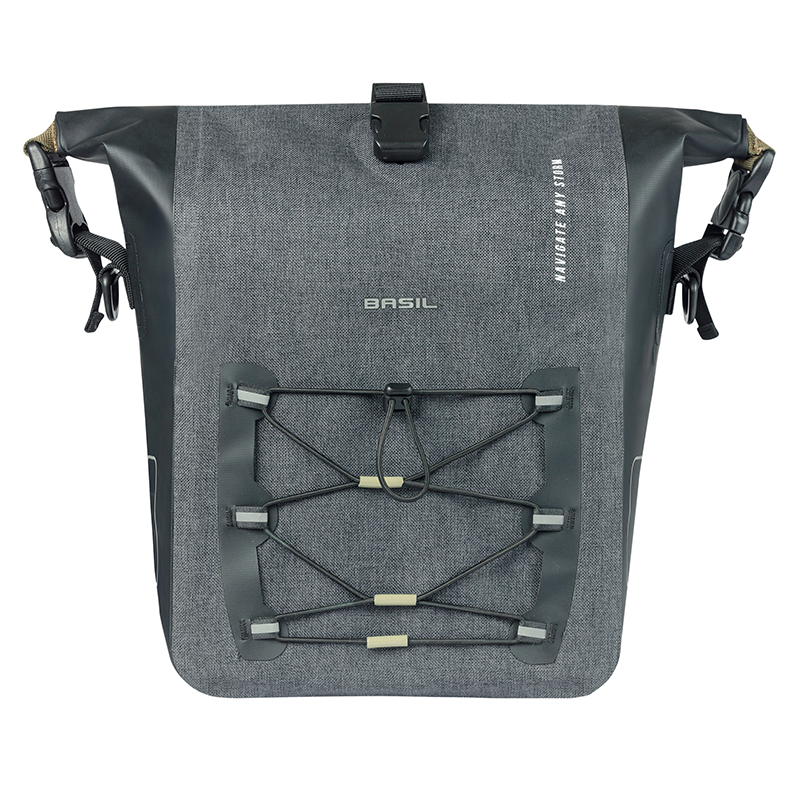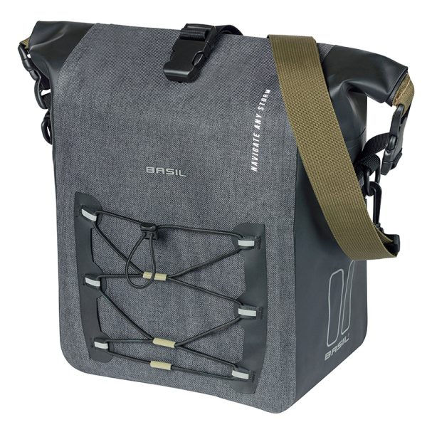 Sacoche Arriere Velo Laterale Basil Navigator Storm Cyclotouriste Waterproof 12-15L Noir Fixation Mik Hooks Sur Porte Bagage (36X14X25Cm) Avec Poignee Et Bandouillere Fermeture Enroulement